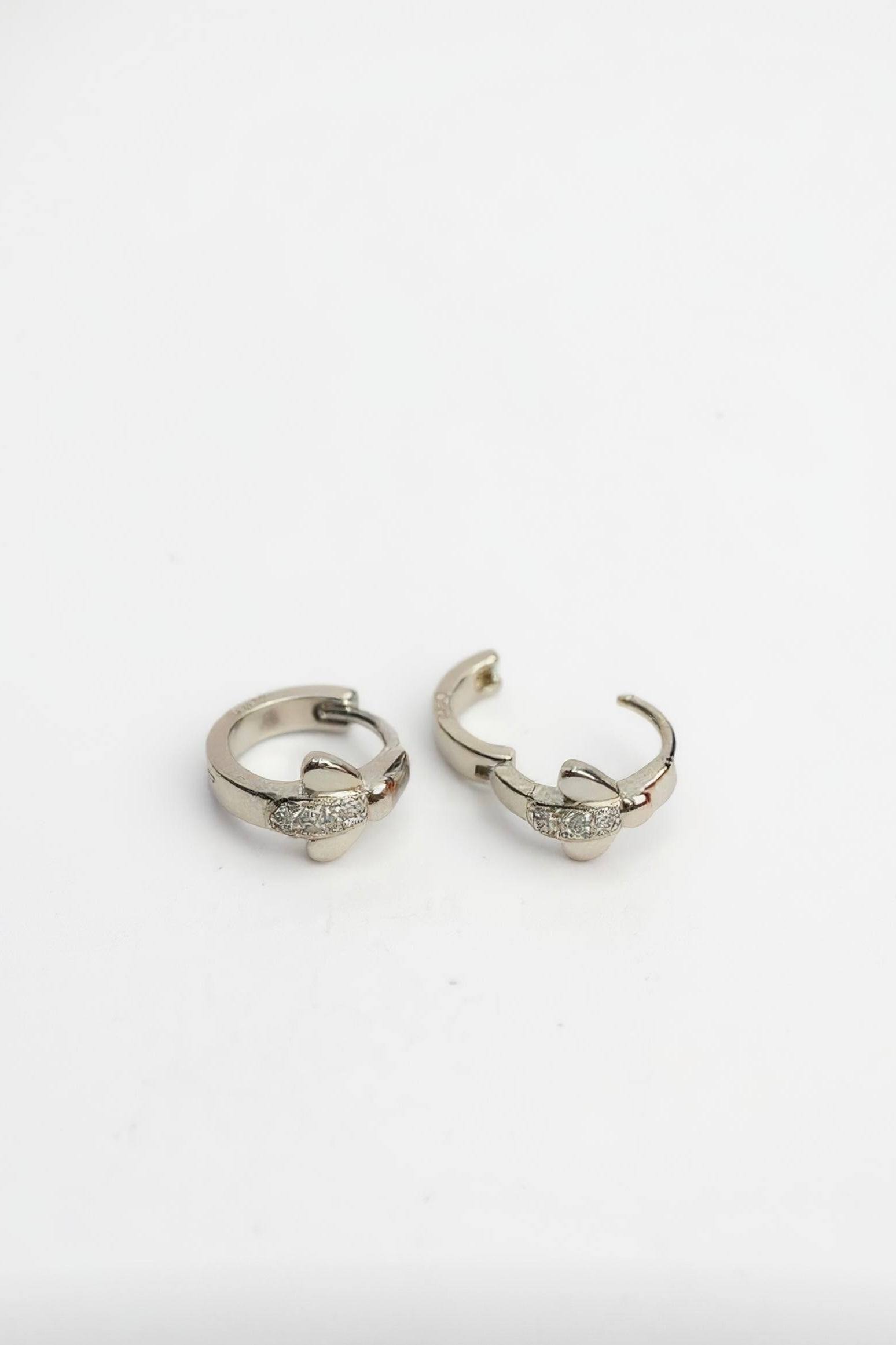 Shimmering silver huggie earrings designed with a delicate knot and embedded crystals for a refined, classy look. Lightweight and versatile—perfect for daily wear or adding elegance to any outfit.