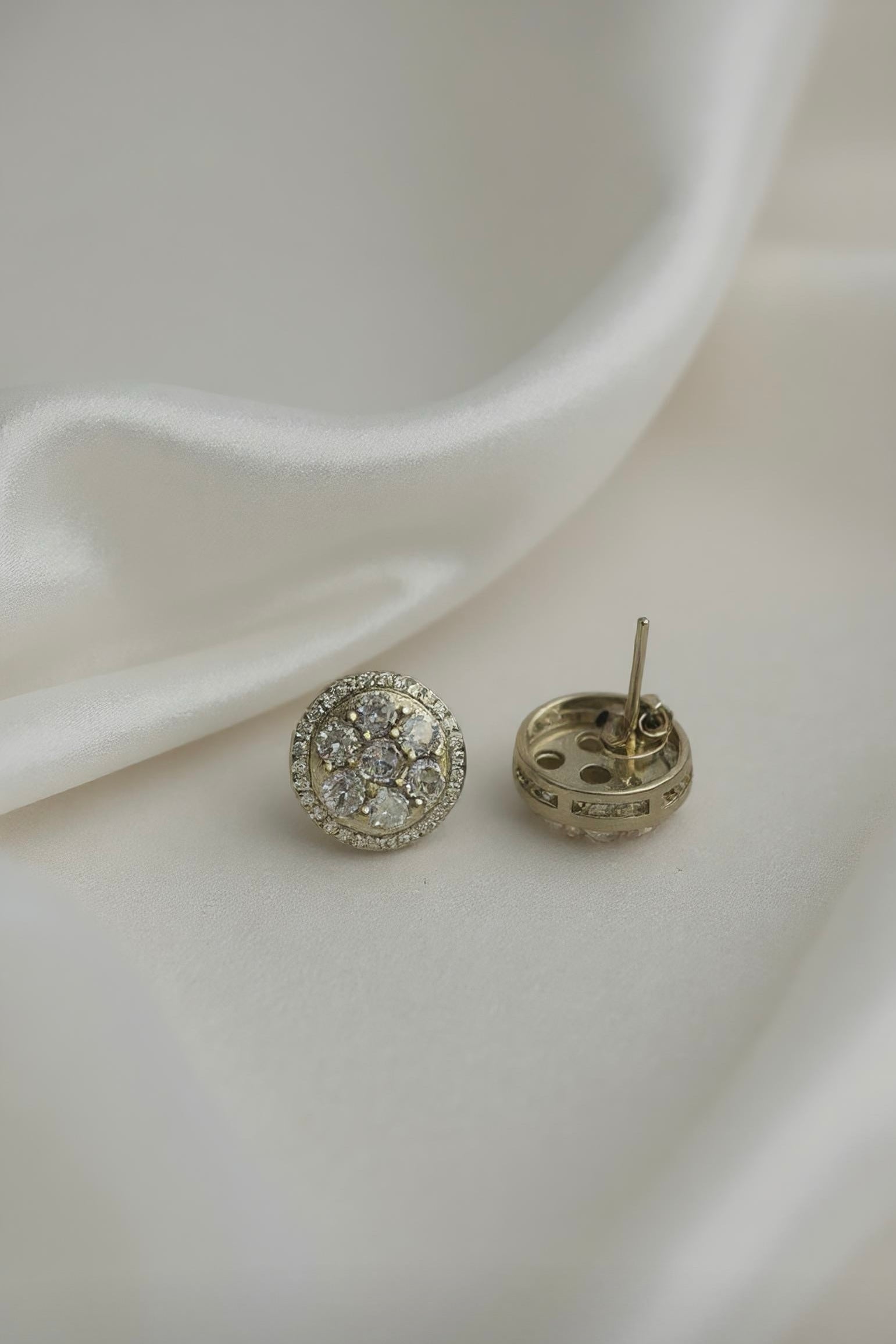 These elegant stud earrings feature a brilliant round center stone encircled by a halo of sparkling accents, creating a timeless, high-shine look.