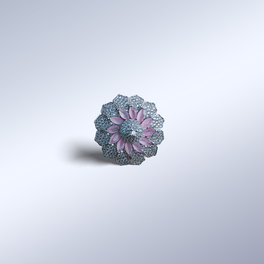 A statement ring with a ruby-colored stone wrapped in a dynamic spiral silver design. Artistic, eye-catching, and full of character.
